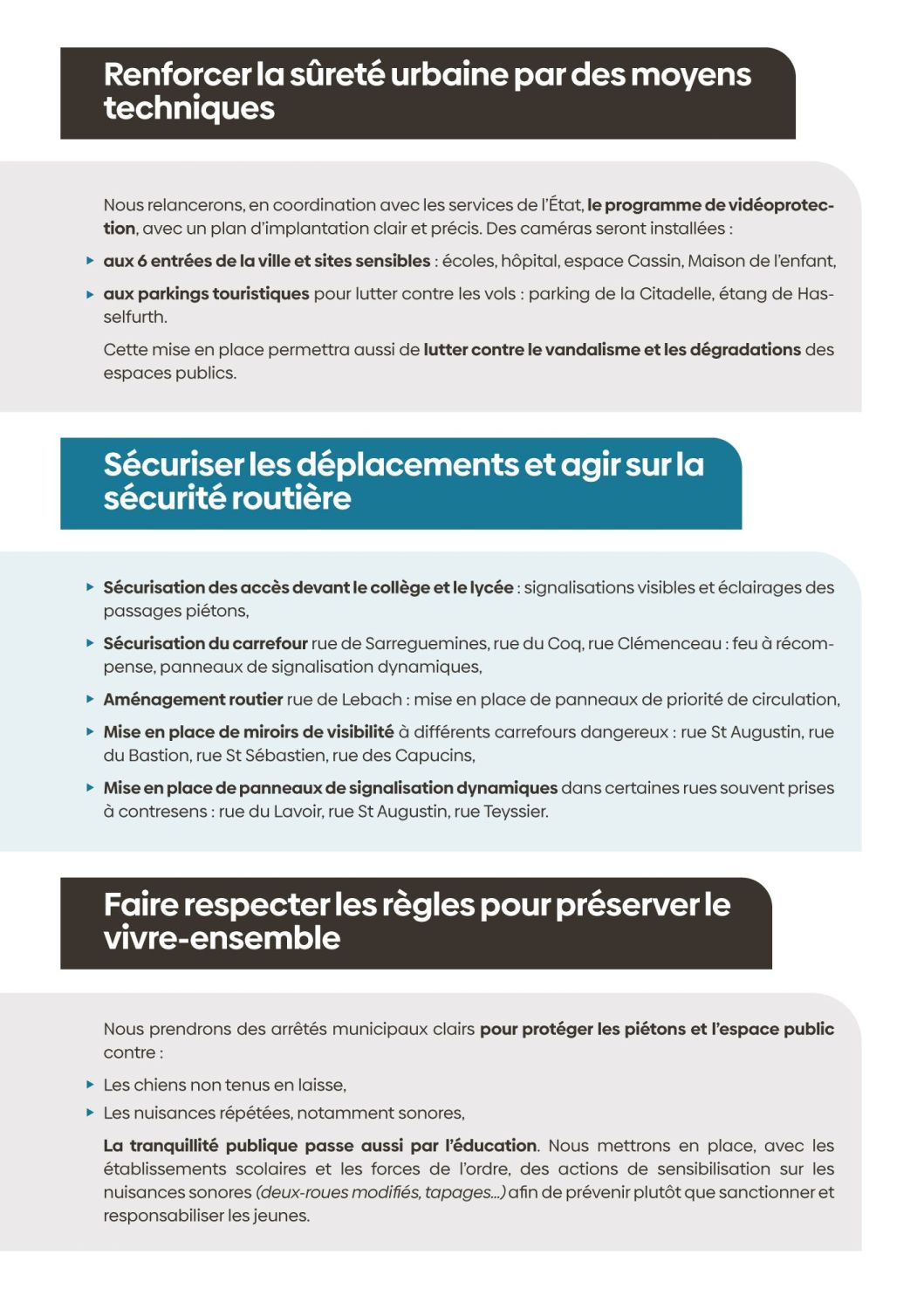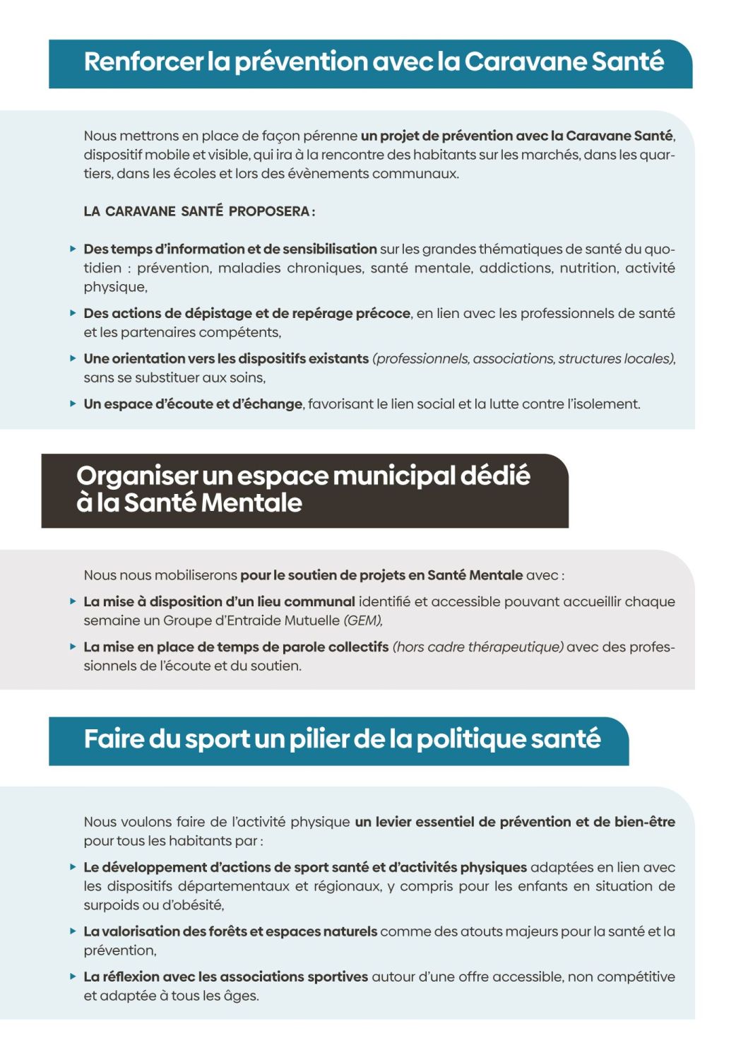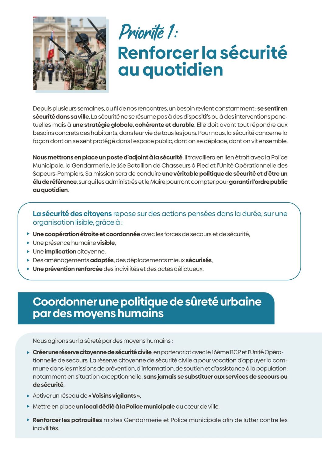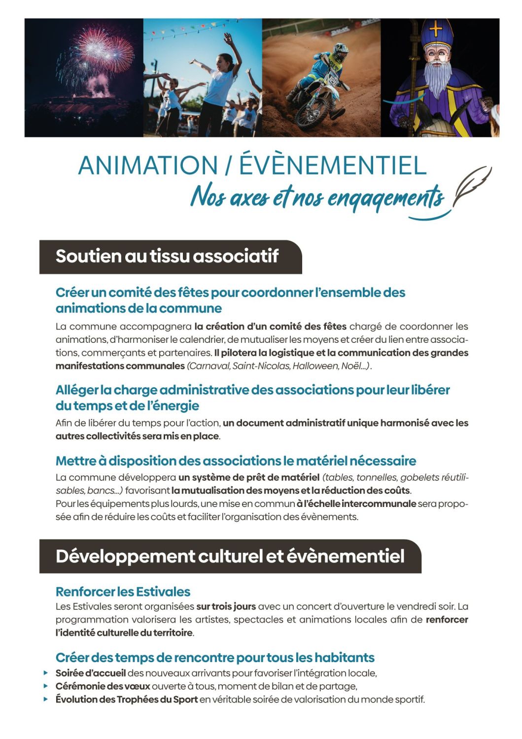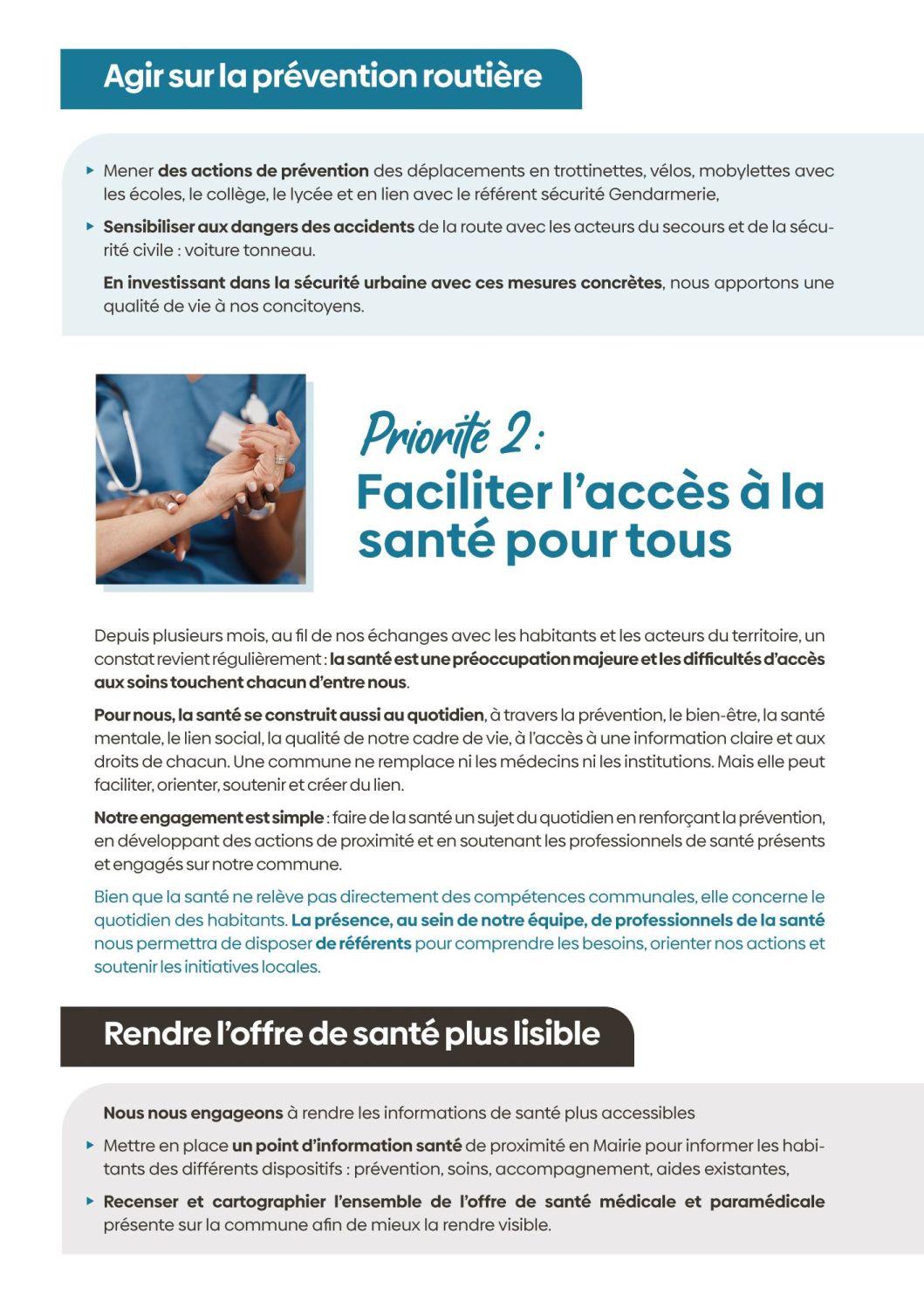 ici, nous vous présenterons nos projets, autour de ces priorités : la vie associative, l'animation / le cadre de vie, l’urbanisme, la sécurité / le social et les solidarités / l’économie locale, l’attractivité.